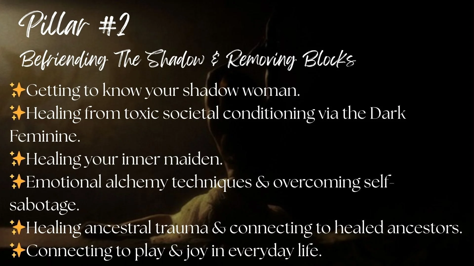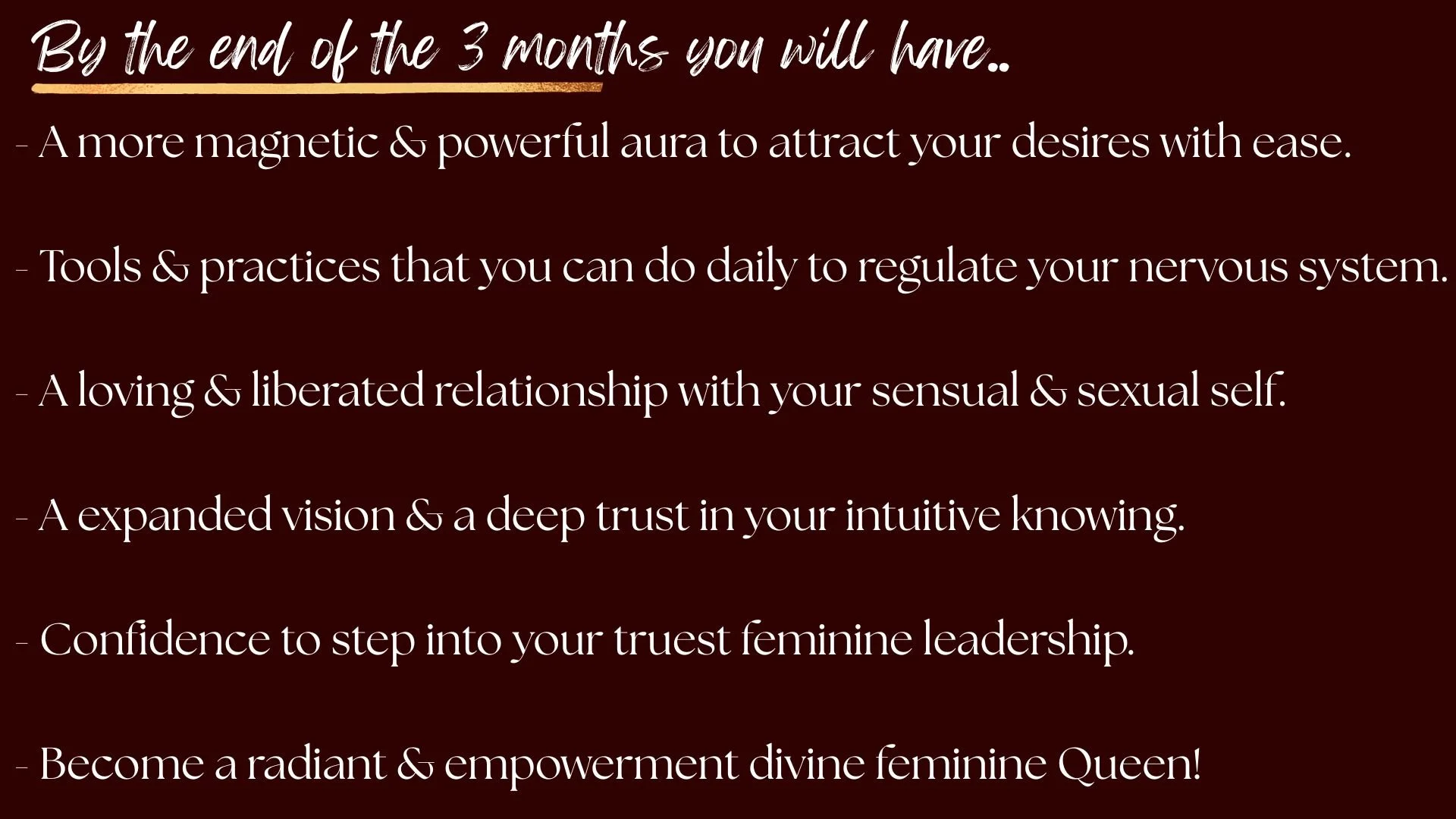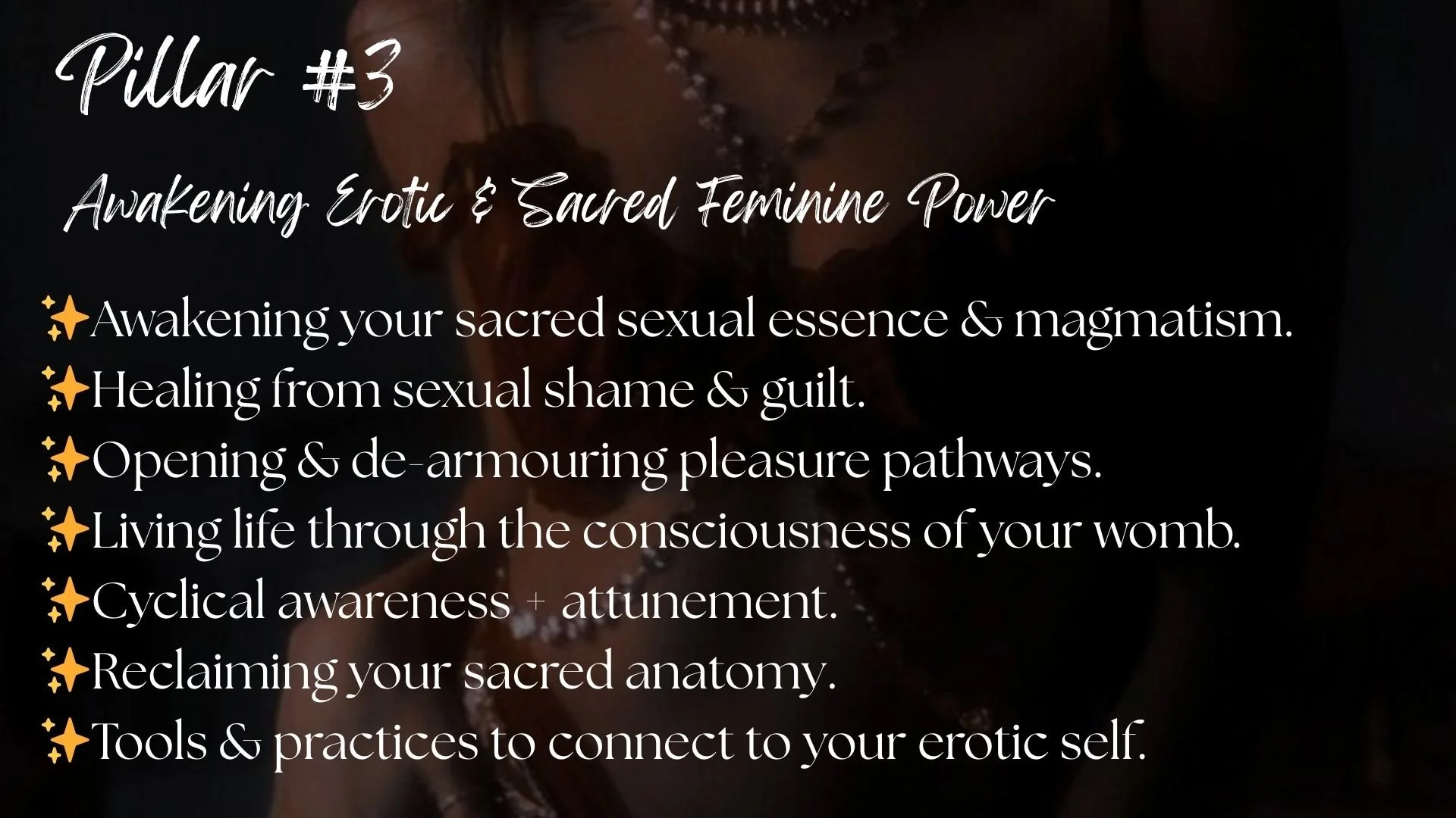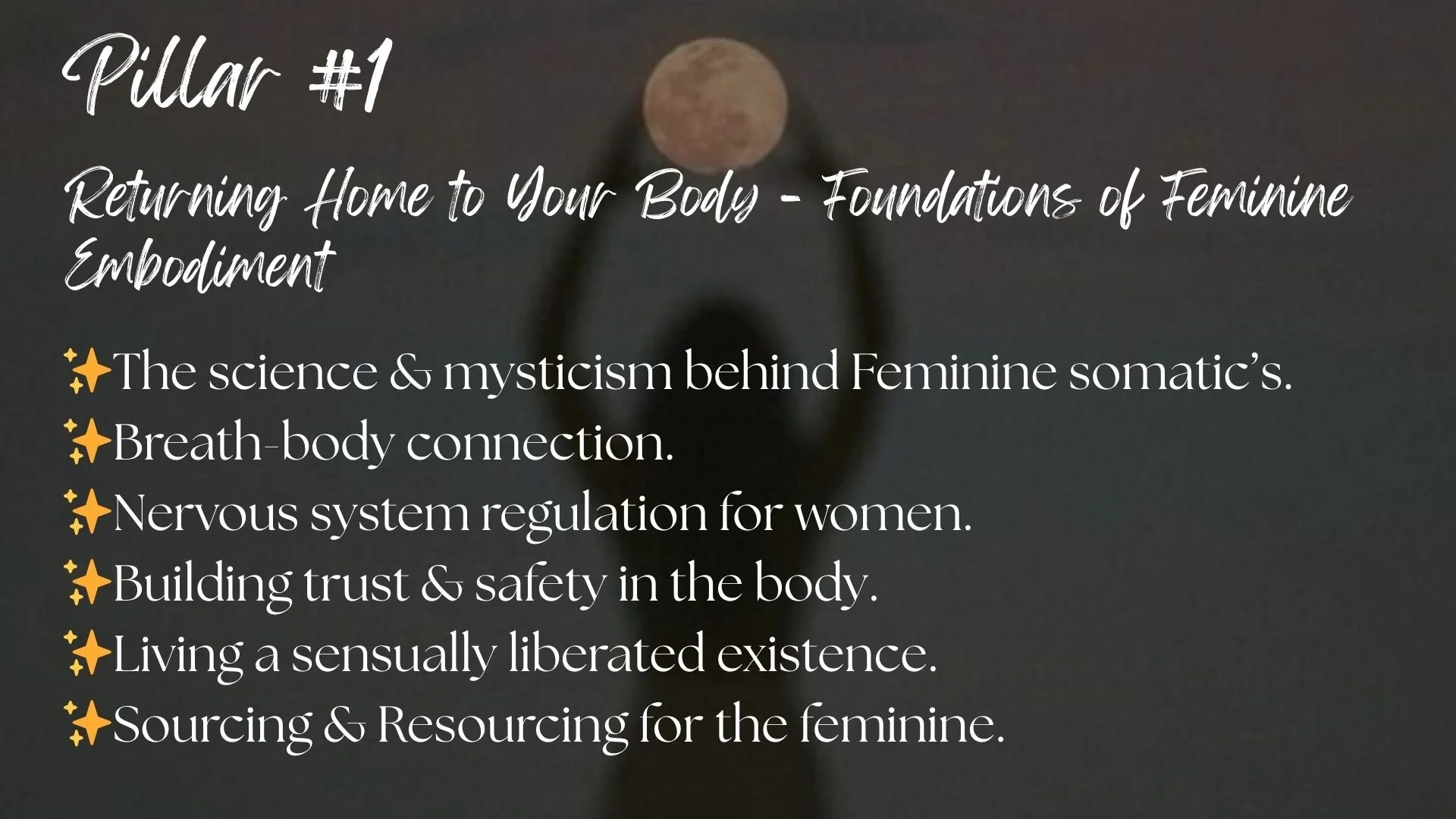 The online portal includes recordings of all live calls, guided embodiment practices, meditations, rituals, supporting materials, with new content uploaded weekly related to the theme of that week. You will also have access to the Liberated Feminine Skool community where you can share your wins & desires!